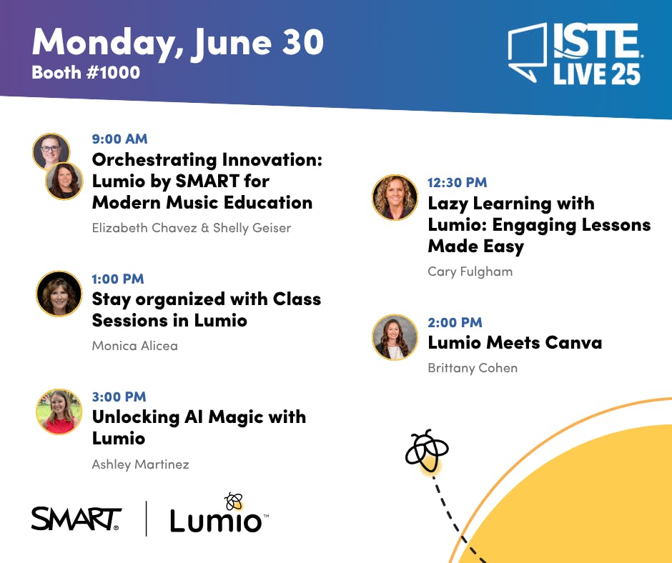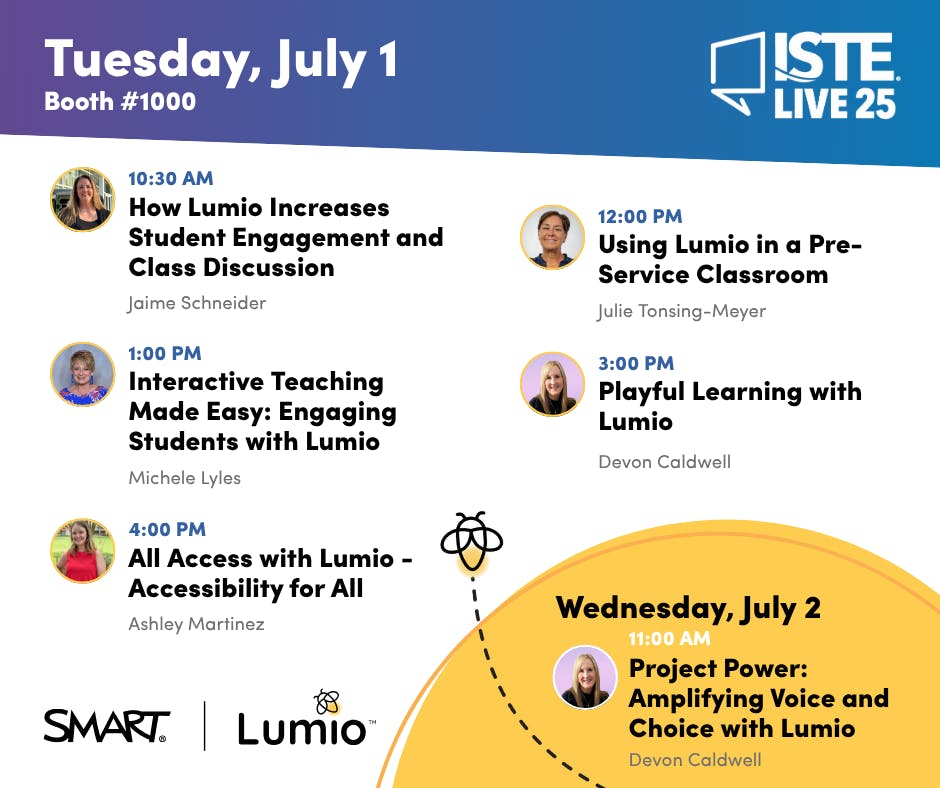 Add them to your schedule and share the schedule with your personal learning networks even if you're #notatISTE this year and use the following official hashtags when posting online {#ISTELIve, #notatISTE, #goLumio, #SMARTTech}!